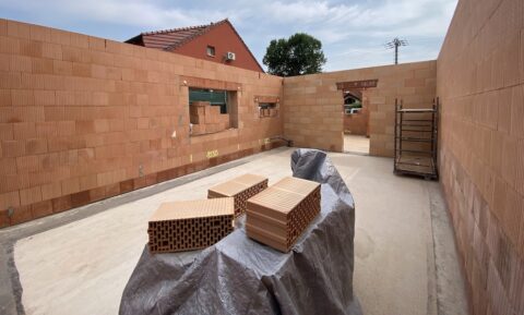 - zdění obvodových nosných stěn (cihla, tvárnice)